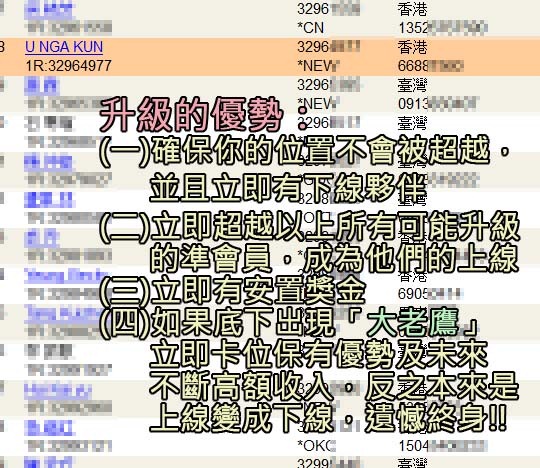 比您晚免費註冊體驗系統排在您下面的6/4 香港(U NGA KUN),評估41天後於7/15自動升級正式,加入經營行列!